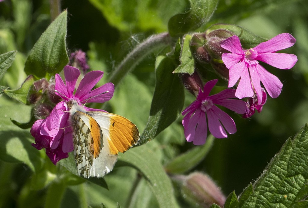 There was also lots of birdsong, even though the peak is over and most birds are busy feeding youngsters now. A Blue Tit was seen emerging from one of the boxes; a Song Thrush was having a scuffle with an intruding male and it was good to hear Chaffinch, as these have been scarce recently.