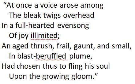 Although birds have seemed scarce recently, on 16th December I heard the first Song Thrush in song. Hearing that bird singing in the depths of winter, I am always reminded of Thomas Hardy’s poem, The Darkling Thrush.